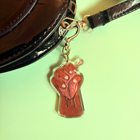 "Squeeze" Keychain - Glitter Epoxy Heart Keychain | Anatomical Heart in Hand Design (6cm)